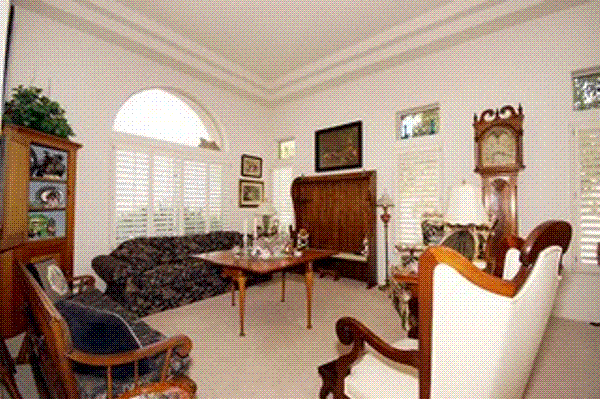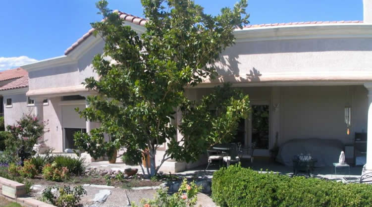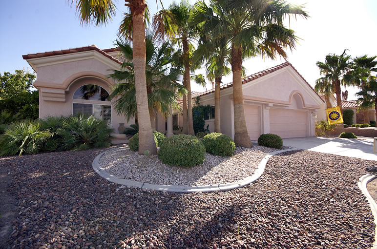 Exceptional landscaping with roses, sunken rock pond and many trees.